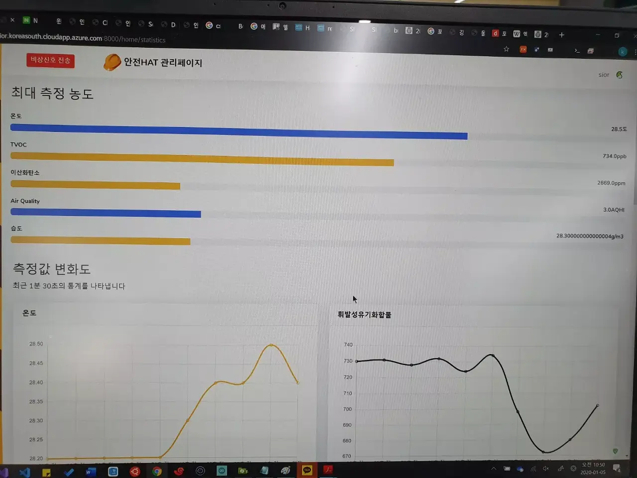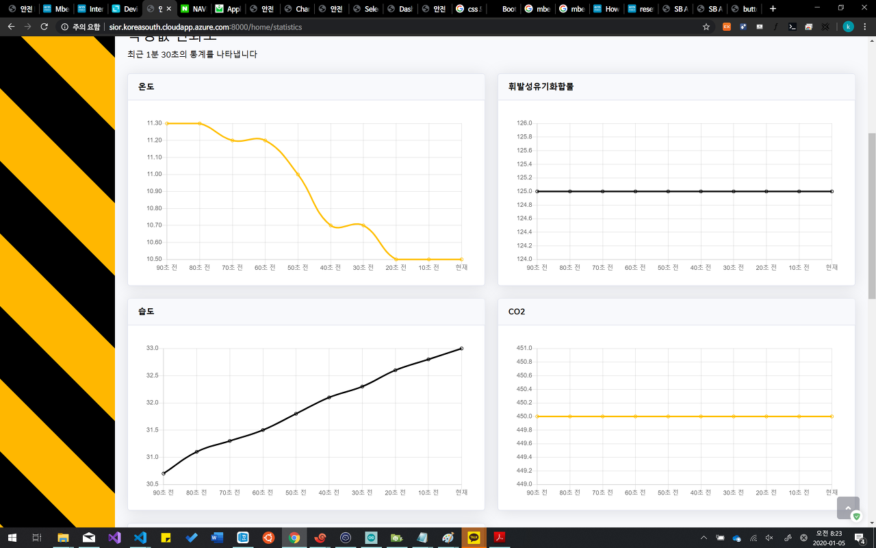 Django를 기반으로 관리자를 위한 대시보드를 구현하였으며 UI는 Bootstrap 프레임워크를 활용하였습니다. 또한 웹기반 애플리케이션을 제작하여 관리자가 위험 경고를 보내면 작업자들의 스마트폰으로 알람이 가는것과 동시에 안전모의 부저가 작동하도록 설계하였습니다.