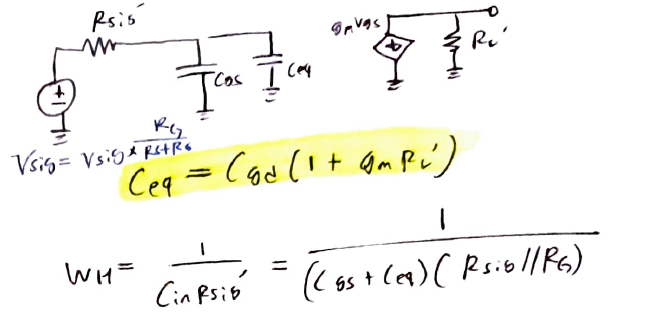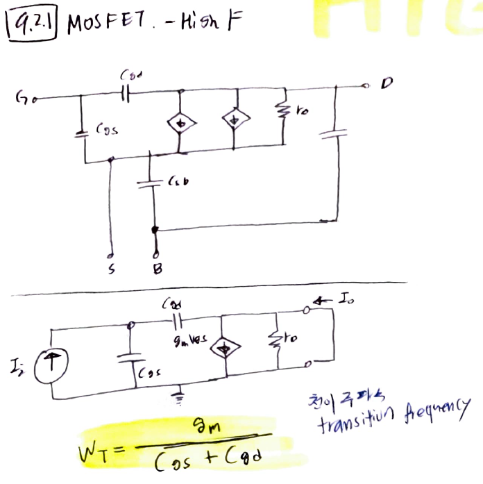 f_H는 BJT와 MOSFET의 internal Cap에 의해 발생한다. open circuit time constant method를 이용한다.