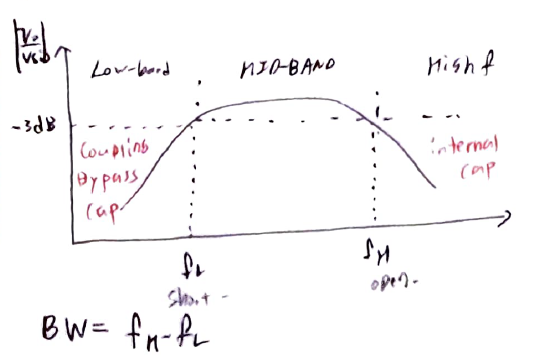 MOSFET과 BJT를 이용한 증폭기는 아래와 같이 주파수 응답을 가진다.
