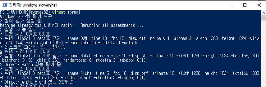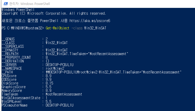 3단계) 평가가 완료되면 아래 코드를 PowerShell에 입력해 체험지수를 확인합니다.