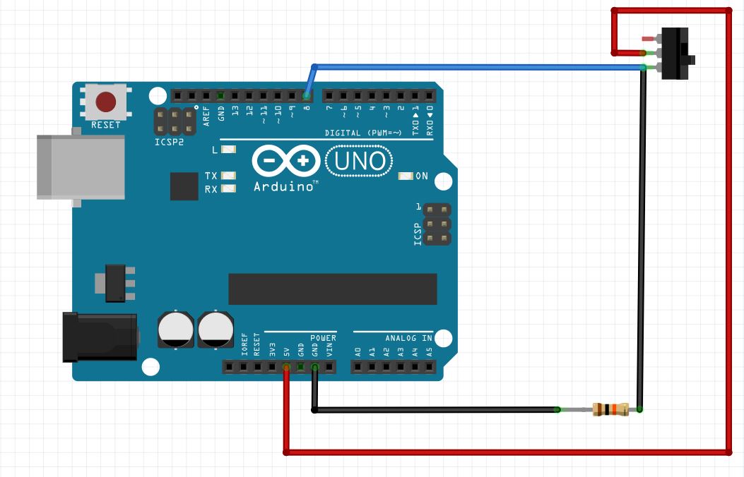 - 저항 10kohm (스위치가 아닌 다른 센서류를 위한 풀다운일 경우 전류에 맞는 다른 저항이 필요합니다.)