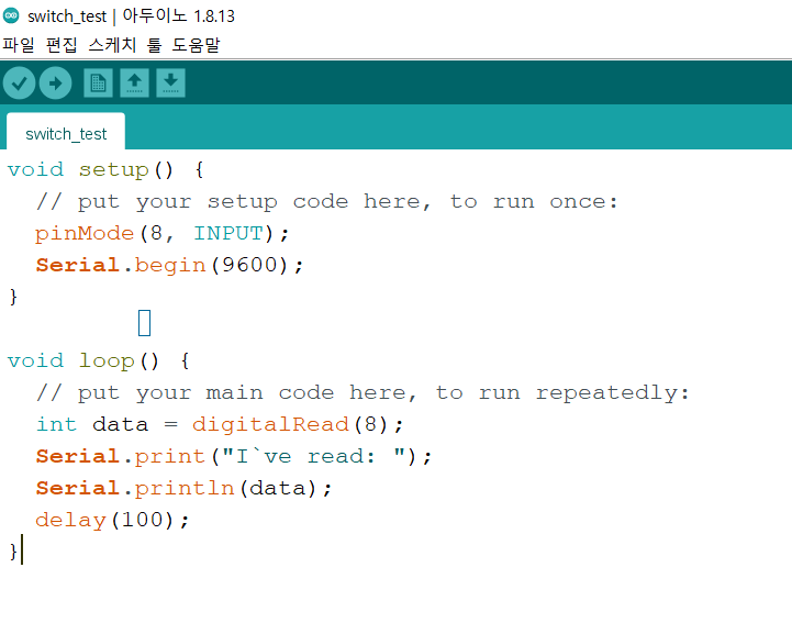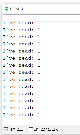 스위치 동작 결과 0과 1을 잘 읽어주는 것을 볼 수 있습니다.