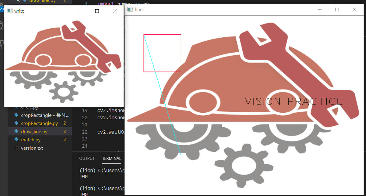 cv2.putText(img, "VISION PRACTICE", (320, 240), cv2.FONT_HERSHEY_PLAIN, 2, (0,0,0))